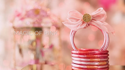 Mindful Glamour Ritual: Our Mindful Glamour Ritual encourages you to embrace the present moment. Pause. Breathe. Slide on each Carousel Pink All Weather Bangle®, With every intention set, embark on your day with a sense of purpose and mindfulness.