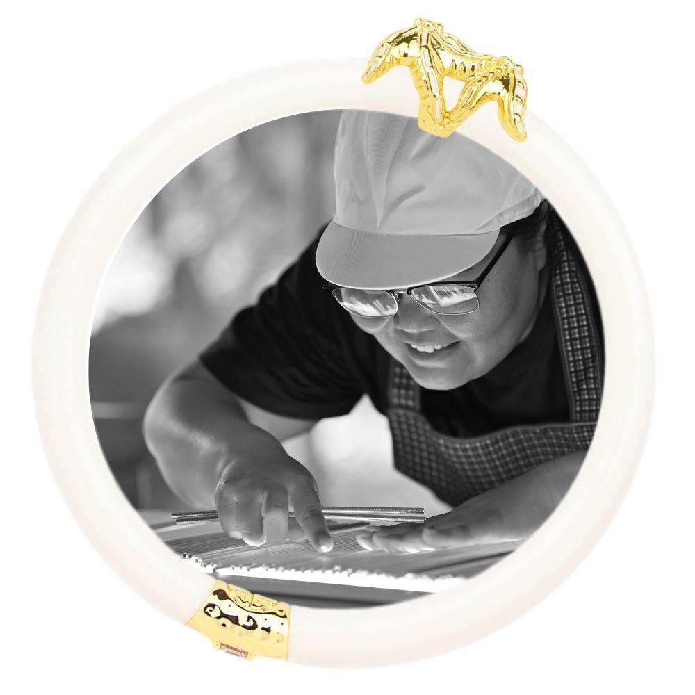 The main visionary artisan behind this bangle is Pukki, whose meticulous craftsmanship brings this piece to life. Handcrafted in Bangkok, each bangle is a testament to artistry and tradition, blending modern design with timeless techniques. Made with care, it reflects the skill and dedication of its maker, ensuring a piece that is as meaningful as it is beautiful.