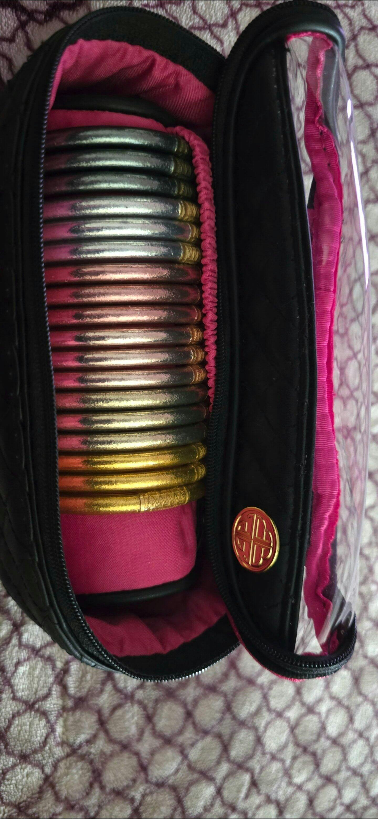 Keep it classic with the Essentials Holiday Bundle, featuring 18 bestselling All Weather Bangles in 6 timeless tones and including a black quilted travel case.